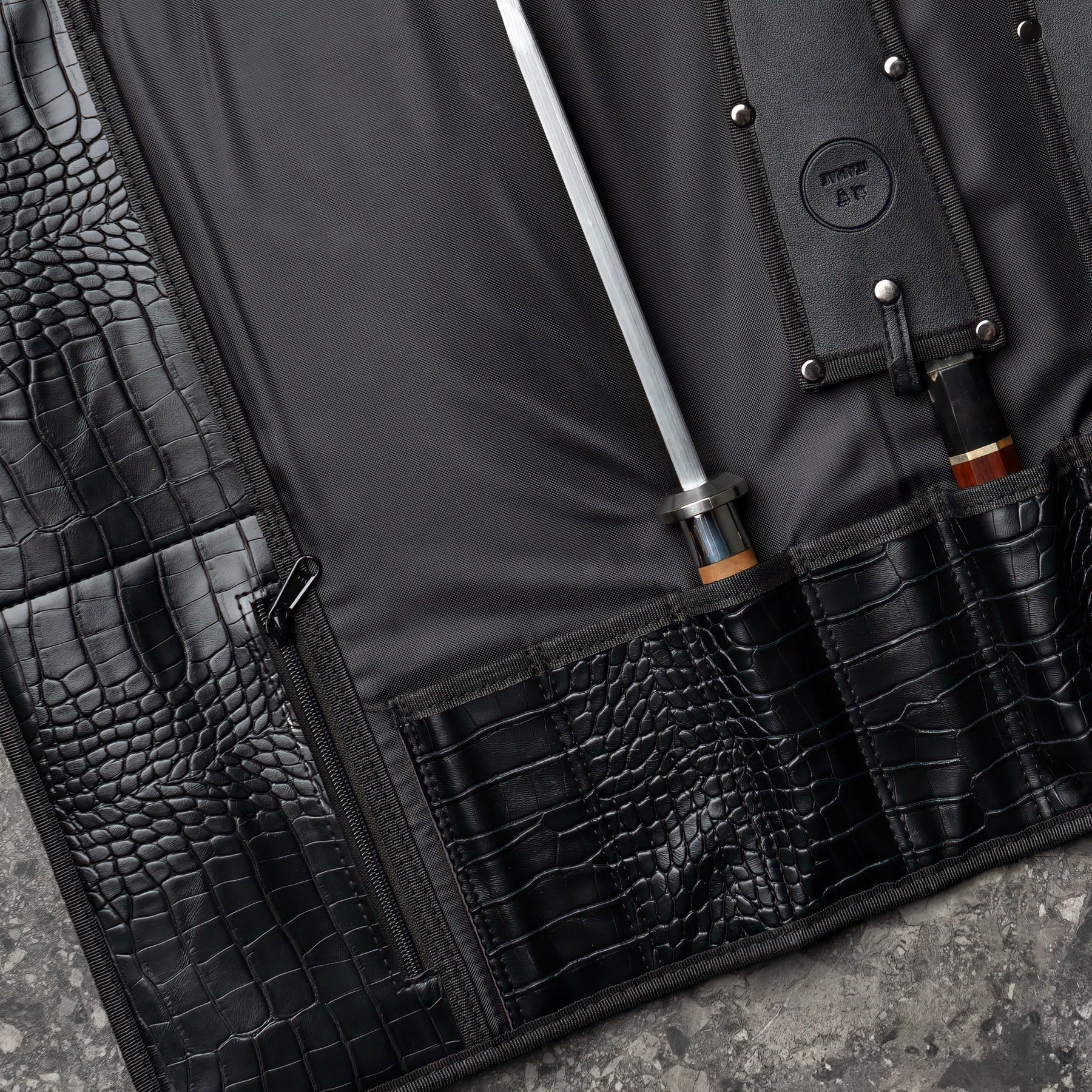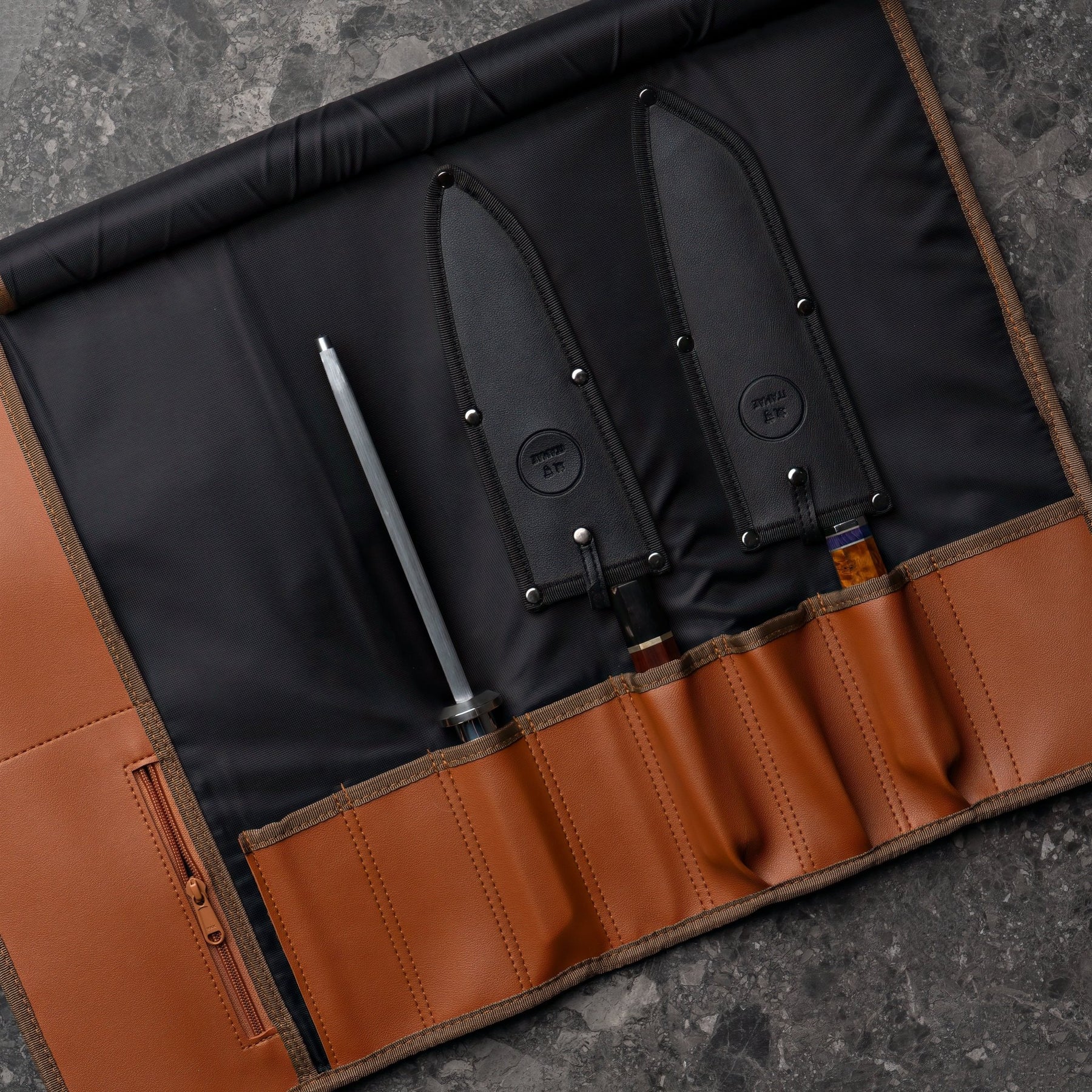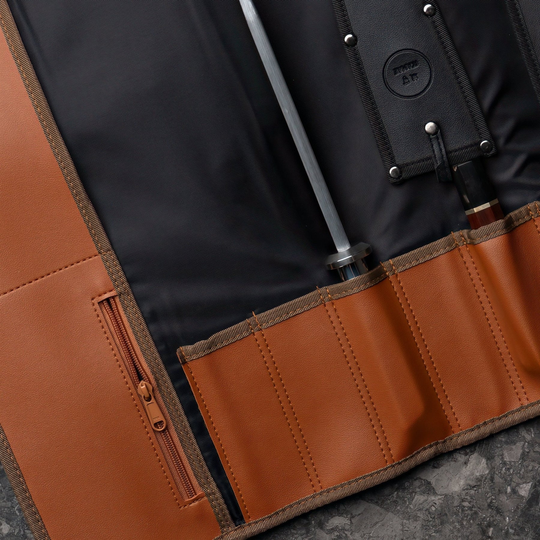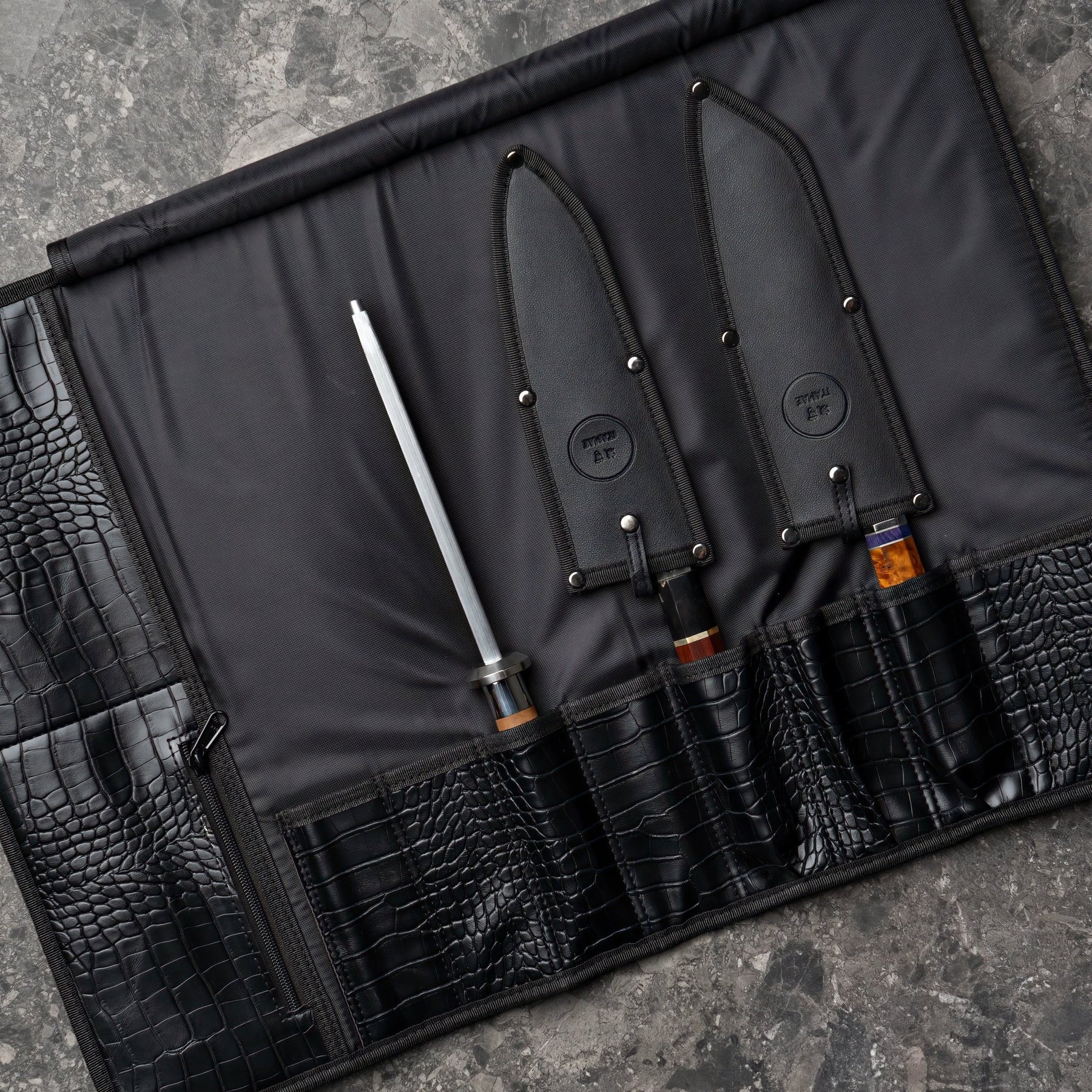 Our knife bags are individually handcrafted in the Philippines, tailored for professional chefs, culinary students, or dedicated home cooks. We recommend using knife guards before placing your knives in our knife bags.