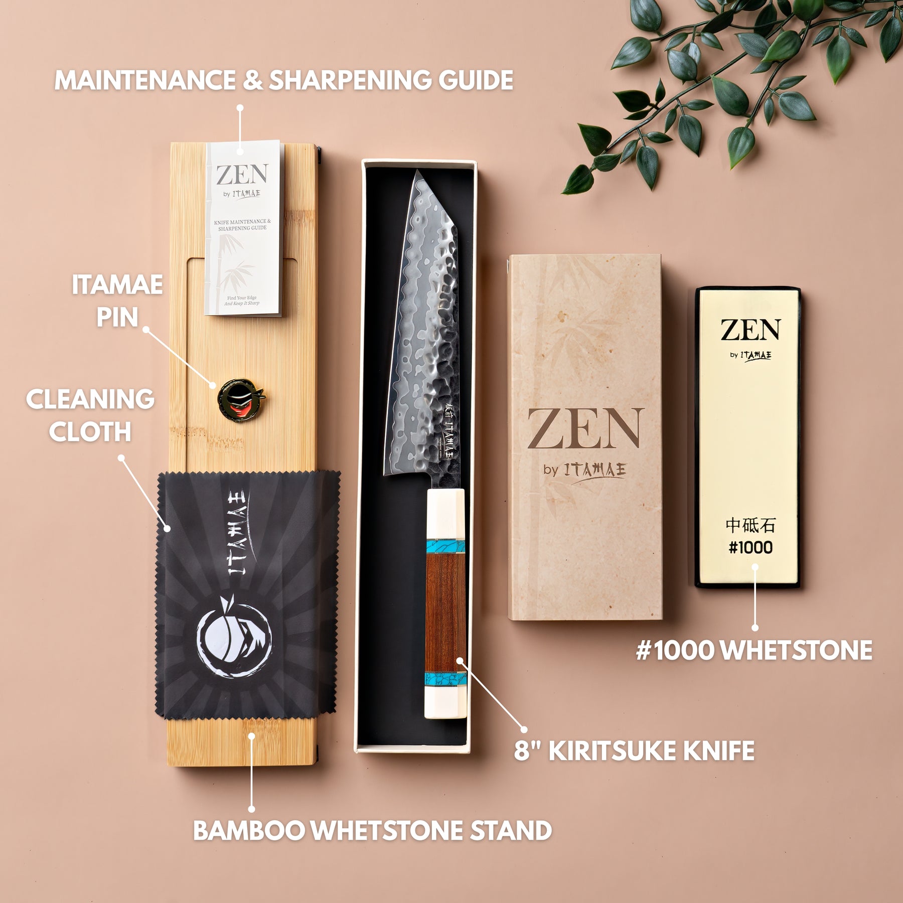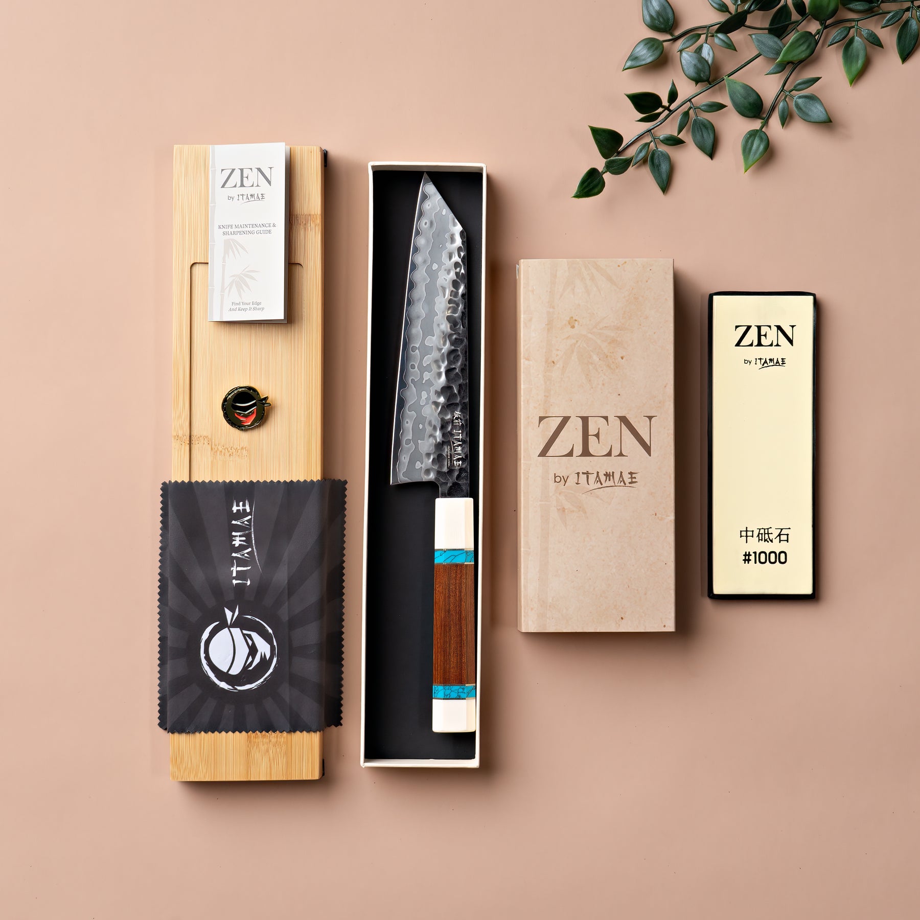 Packaged in a premium ITAMAE gift box, with an ITAMAE cleaning cloth and collectible pin, the ZEN Kiritsuke is more than a knife